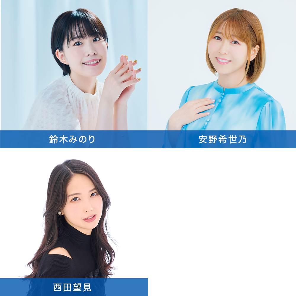 - 稗田寧々(三好藍美 役)、若山詩音(染谷波 役)、梶原岳人(霧尾賢 役)